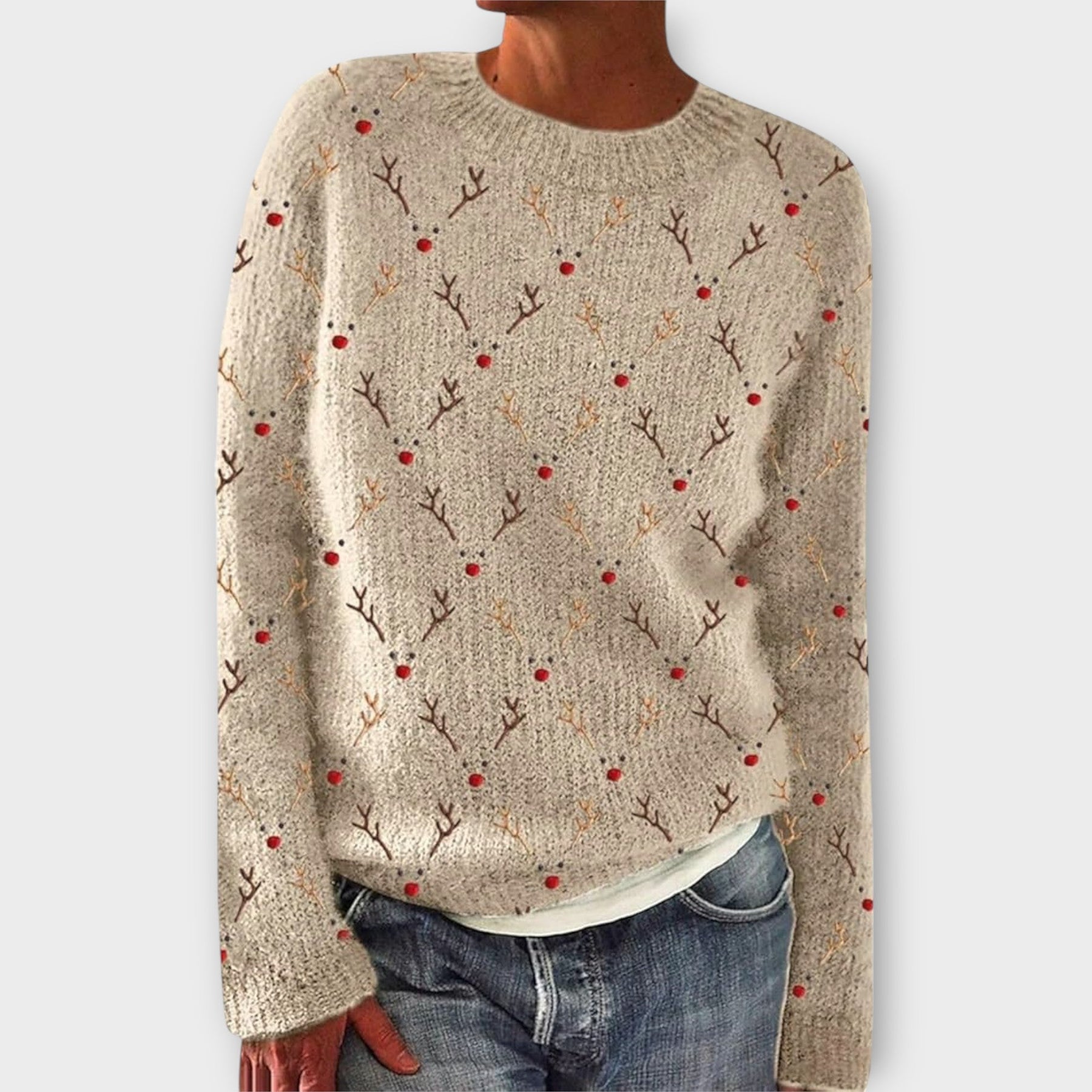 Dette er den vinterlige striktrøje til kvinder! Fremstillet af blødt, kvalitetsmateriale, bringer denne trøje varme og stil til din garderobe. Med sit charmerende vinterdesign skaber den et hyggeligt look og er det perfekte valg til kolde dage – uanset om det er på arbejde, på julemarkeder eller i afslappede weekender.
