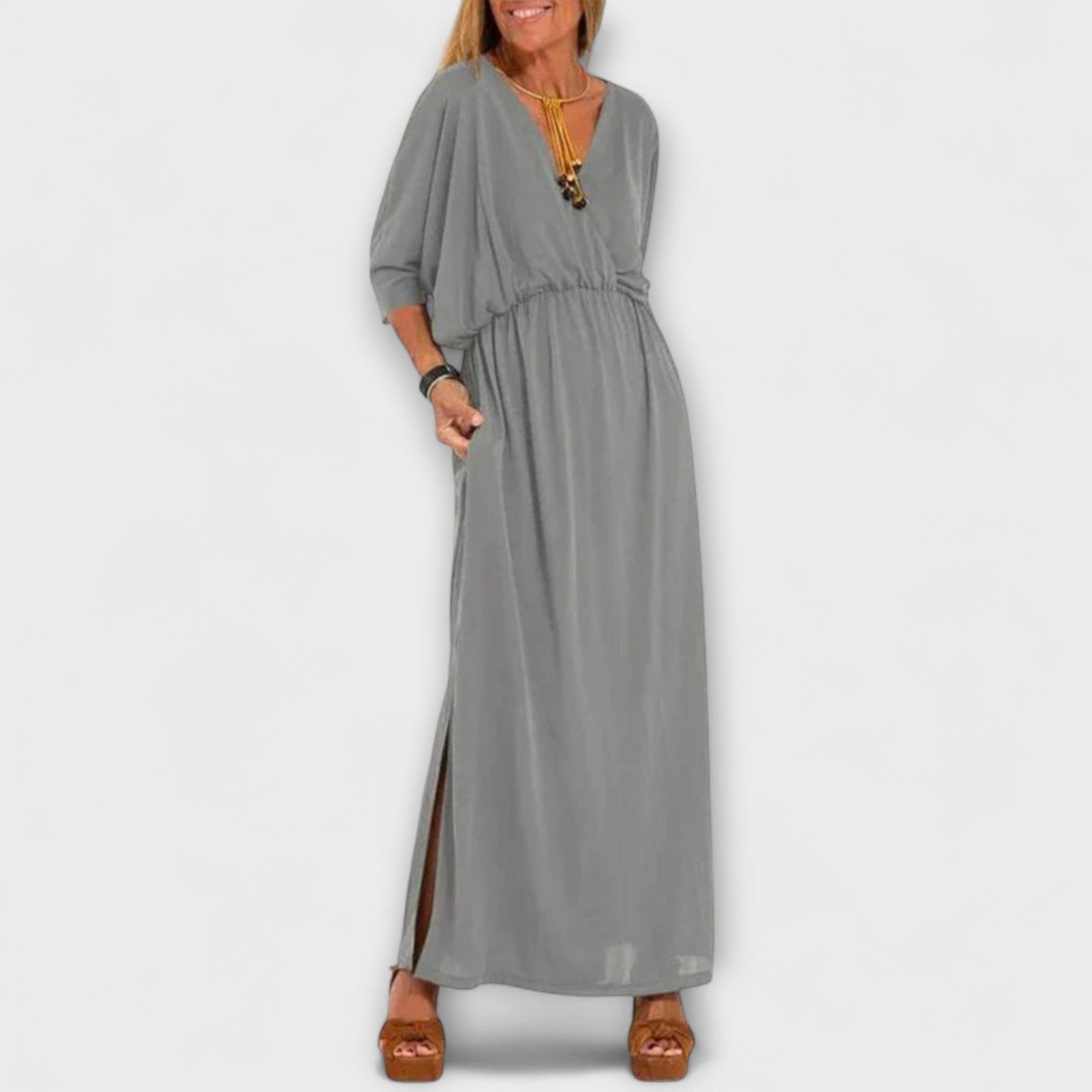Uanset om du klæder dig på til et elegant arrangement eller ønsker at holde det afslappet, er denne alsidige kjole perfekt til enhver lejlighed. Fremhæv din stil og omfavn din skønhed i dag!