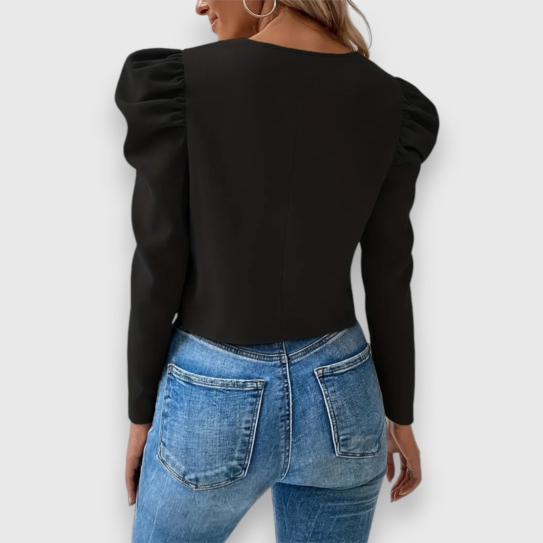 Den korte jakke Lucia imponerer med sit enkle men elegante design. De moderne ballonærmer giver et feminint præg, mens lynlåsen tilbyder en praktisk og alsidig mulighed for at tage den på. Perfekt til elegante outfits i enhver anledning.